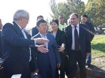 Сначала автобусы с чиновниками и журналистами направились на улицу Ауэзова, где идет реконструкция (от улицы Анкара до Салиевой протяженность 2,7 километра). Мэр Кубанычбек Кулматов рассказал, что за счет гранта правительства Китая ведется реконструкция и капитальный ремонт трех улиц: Махатмы Ганди, Жукеева-Пудовкина, Ауэзова; за счет городского бюджета – Садыгалиева и Патриса Лумумбы; из республиканского бюджета – улица Саманчина. «На Жукеева-Пудовкина и Ауэзова сейчас ведутся работы по устройству тротуаров, лотков и съездов. На улице Махатмы Ганди завершены работы по устройству двухслойного асфальтобетона. До конца октября данные объекты будут полностью сданы в эксплуатацию», - пояснил мэр.
