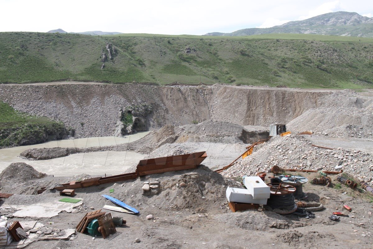 В живописнейшем месте под названием Каратыт, территориально относящемся к Аксыйскому району, компания с говорящим названием «Юрский парк» два года занималась добычей золота. Словно хищный динозавр Юрского периода, она уничтожила плодородную почву, фактически превратив в пустыню площадь в 6,5 гектара, и была такова. Сегодня здесь лишь горы щебня, остатки непригодных металлических деталей и пара вагончиков для рабочих, где все оставшееся «добро» охраняют два старика, которые пять месяцев не получают зарплату.
