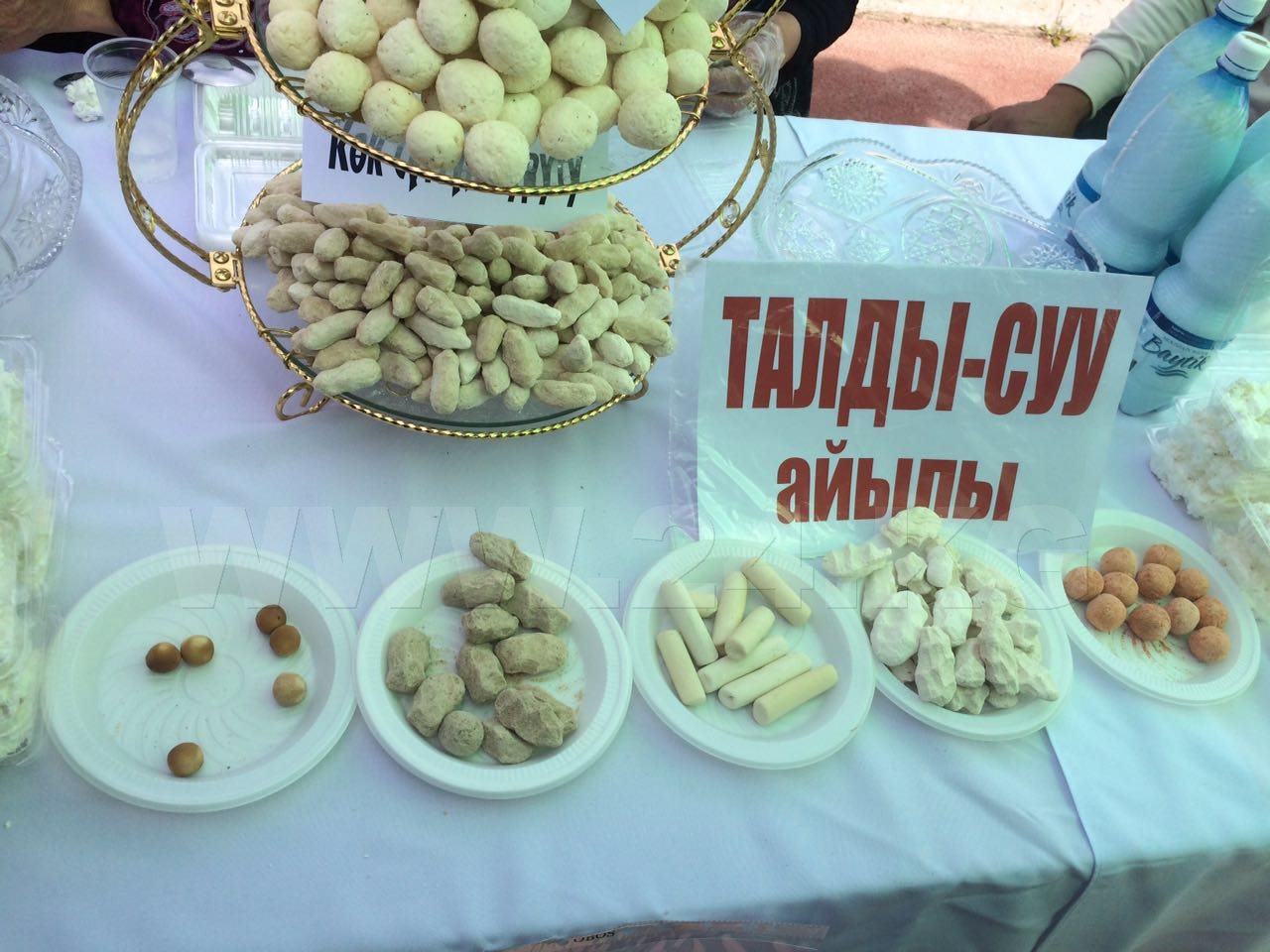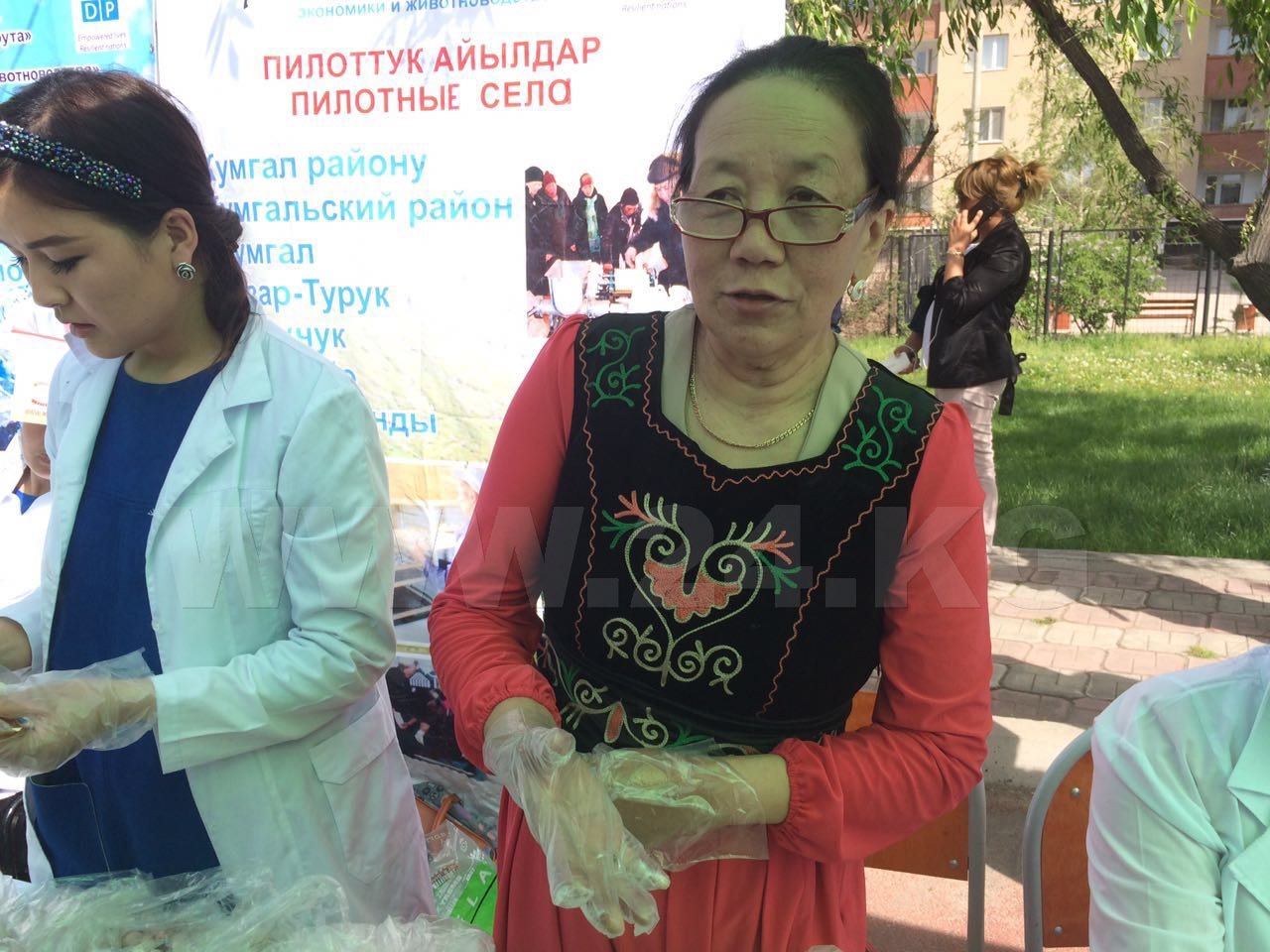 «У меня в процессе приготовления еще более десяти видов, всего получится порядка 30. Сегодня я привезла курут с сушеным мясом, с кониной, есть также с рыбой и бараниной. Помимо мясных видов, вот, смотрите, курут морковный, с облепихой, с малиной. Возьмите, попробуйте. Это же «кыргызский дирол» - курут с мятой», - предлагает свою продукцию Айымжан Аманова.