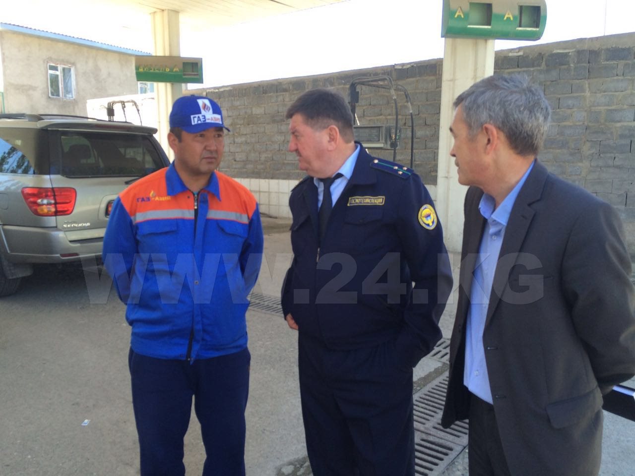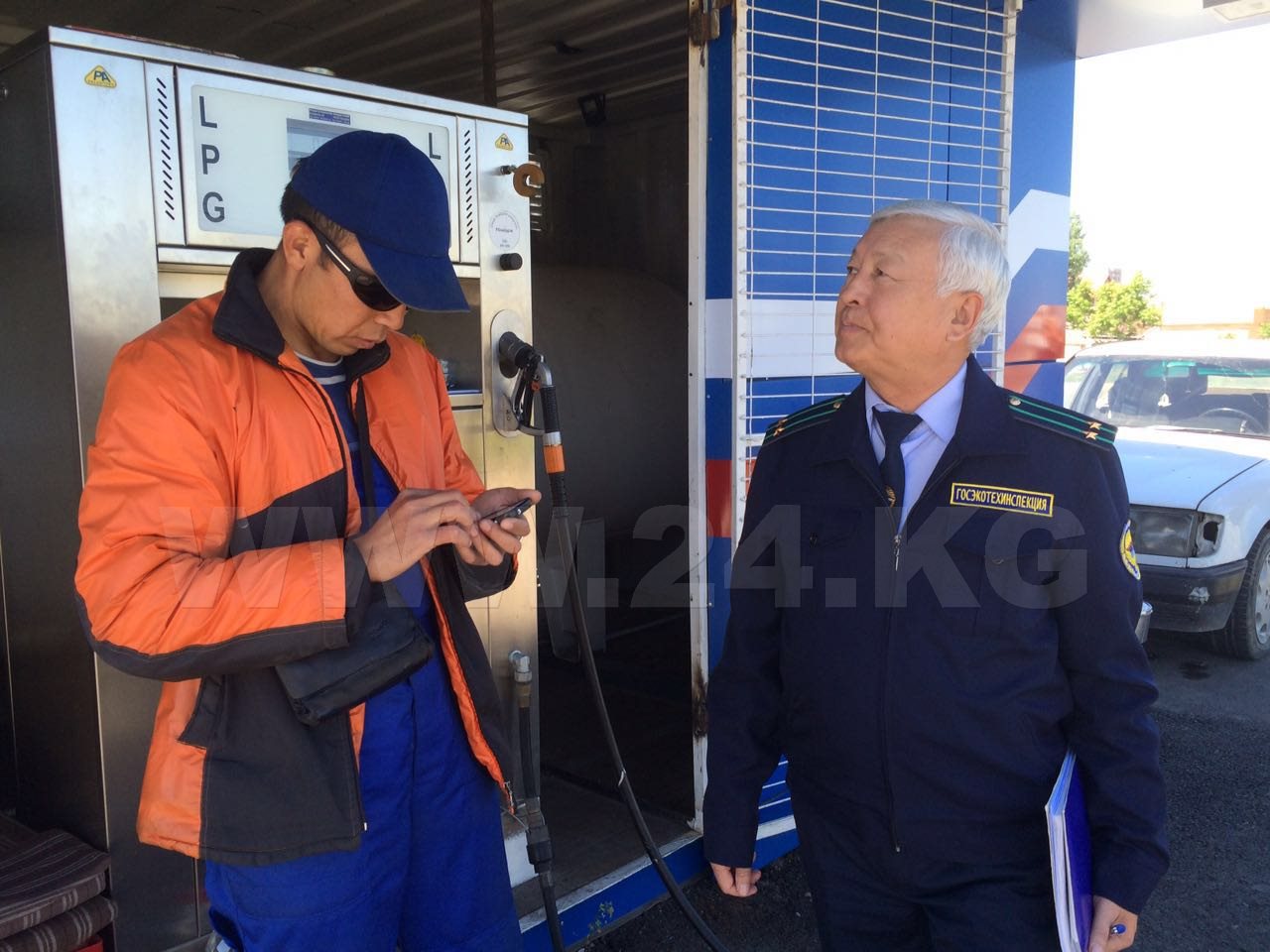 Оператор станции Айбек Жушалиев, увидев людей в форме, спешно начал звонить своему руководству и лишь затем подошел к проверяющим и выслушал их замечания. Их начал перечислять заведующий отделом промышленной безопасности Госэкотехинспекции Аман Махмутов: «Во-первых, у вас нет удостоверения, подтверждающего, что вы прошли специальные курсы и имеете право работать на АЗС. Резервуар под давлением, в нем газ, который в случае утечки может взорваться. По нормам он должен находиться под землей, как это сделано на соседней АЗС. Также есть сомнения, что данный сосуд зарегистрирован в реестре Госгортехнадзора. Кроме того, отсутствуют инструкции и схемы».