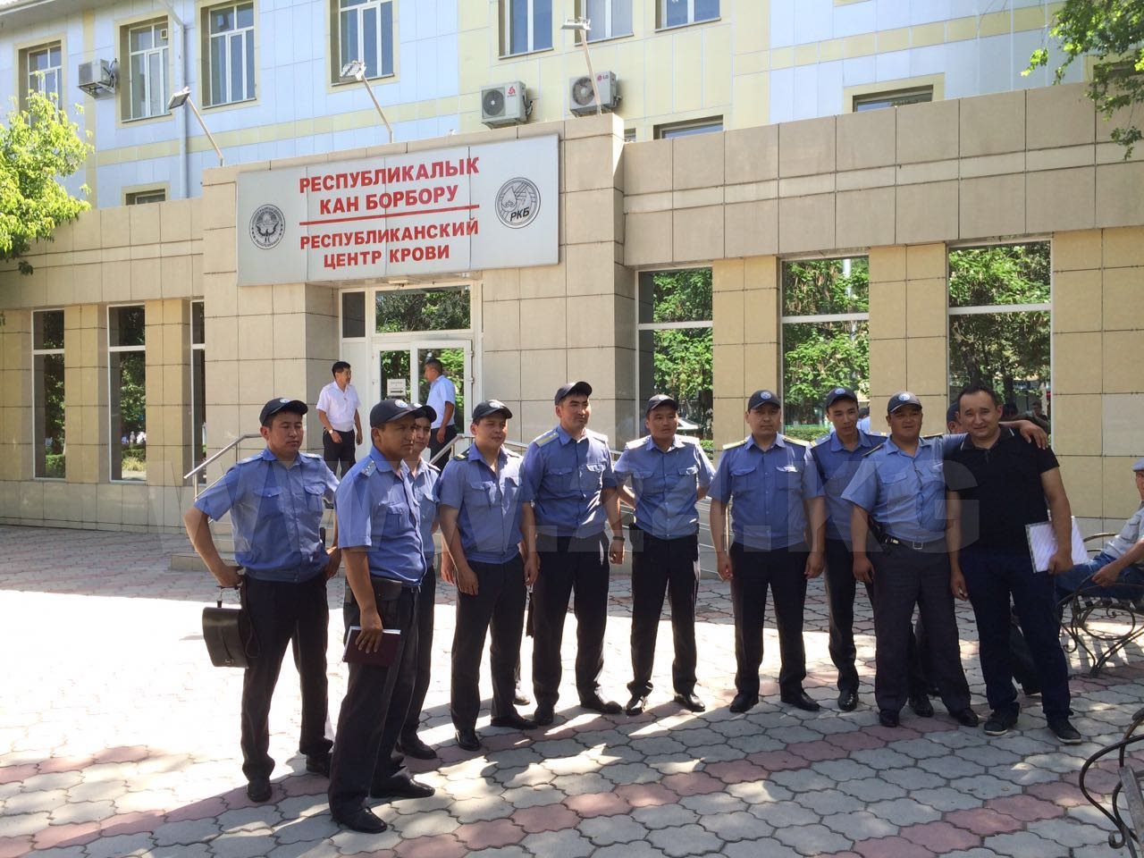 Экипажи патрульной милиции один за другим подъезжают к Республиканскому центру крови - видимо, по мере освобождения. В коридоре сотрудники УПМ ГУВД коллективно заполняют анкеты.