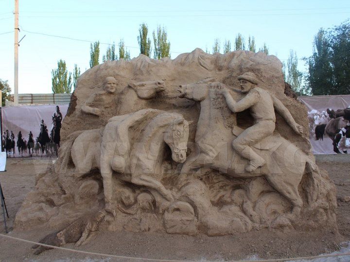 В течение нескольких дней скульпторы создавали из гор песка работы на темы «Всемирные игры кочевников», «25 лет независимости» и «Год истории и культуры Кыргызстана». На фестивале представлена 21 скульптура. Победителя определят 31 августа. У всех желающих есть месяц, чтобы сфотографироваться рядом с трехметровым Манасом или кыргызским поэтом Алыкулом Осмоновым.