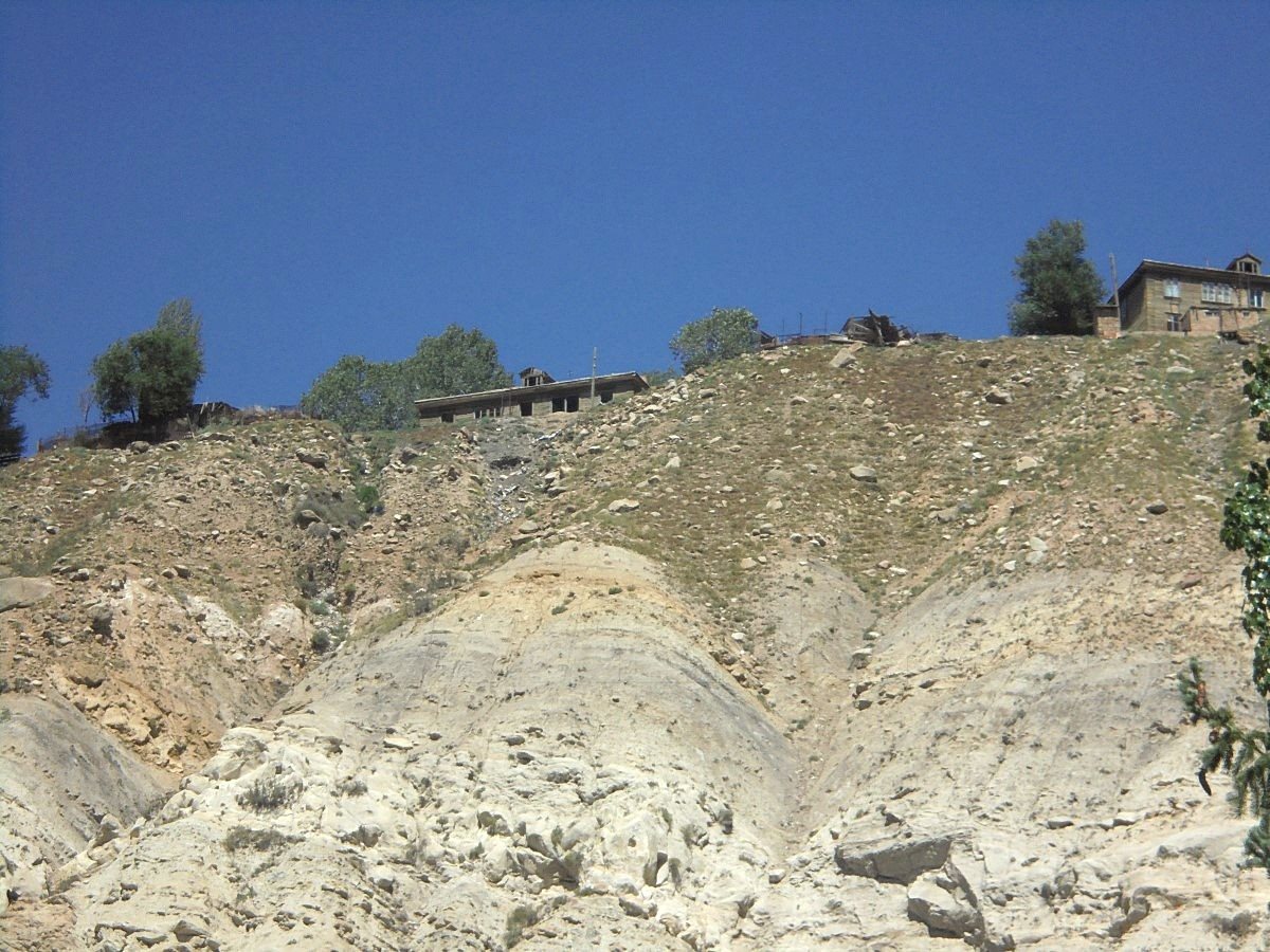 Добираться туда приходится по грунтовой извилистой горной дороге, над которой круто нависают скалы. Каждую секунду с них грозит сорваться камень.
