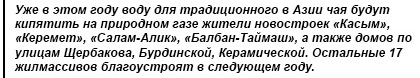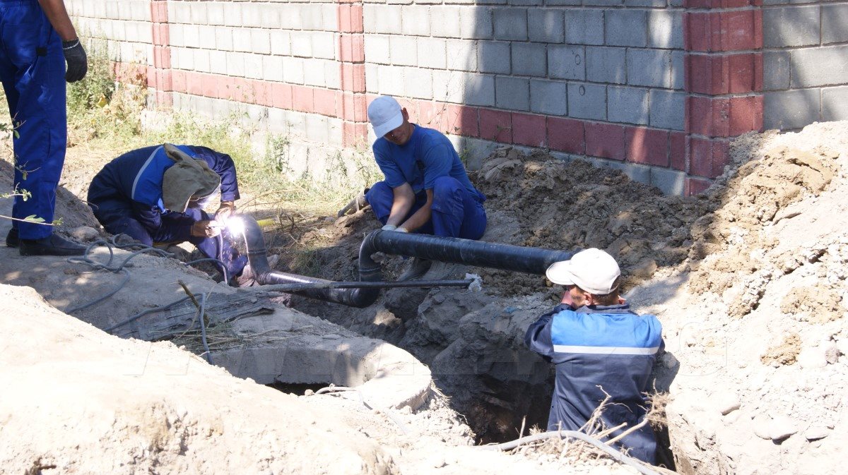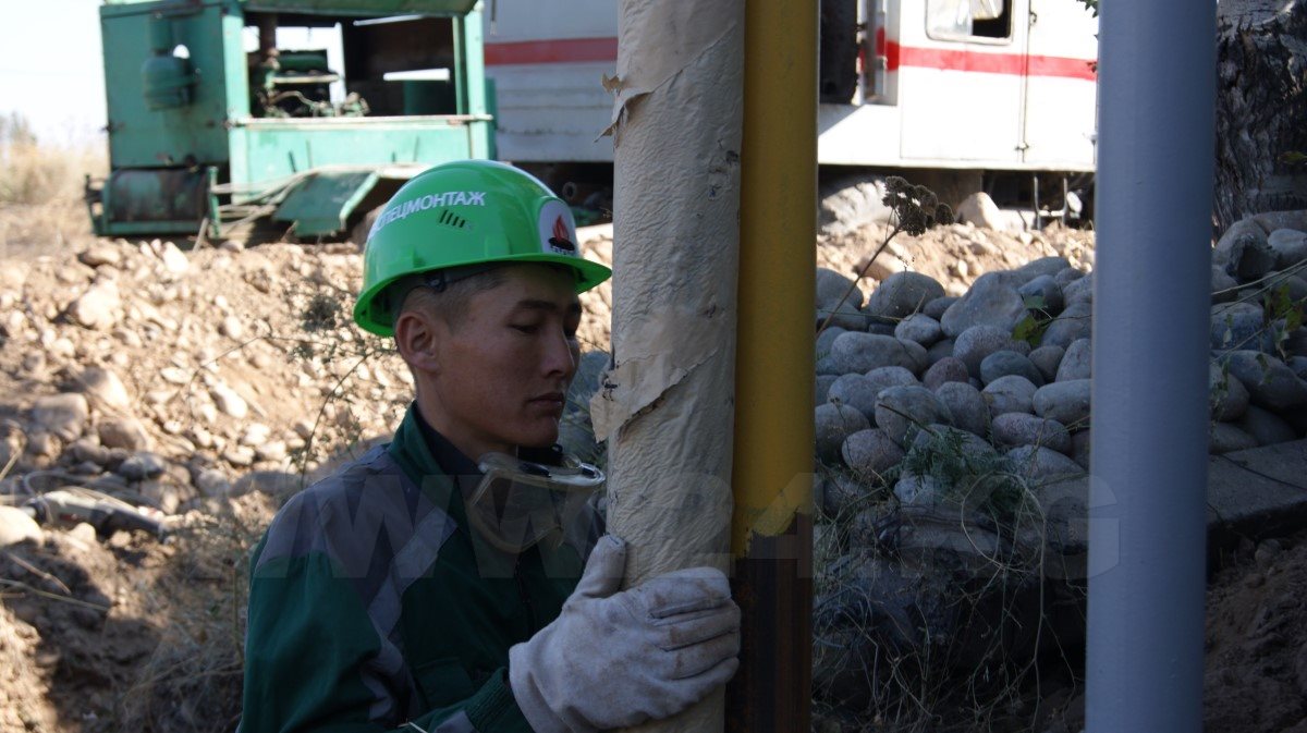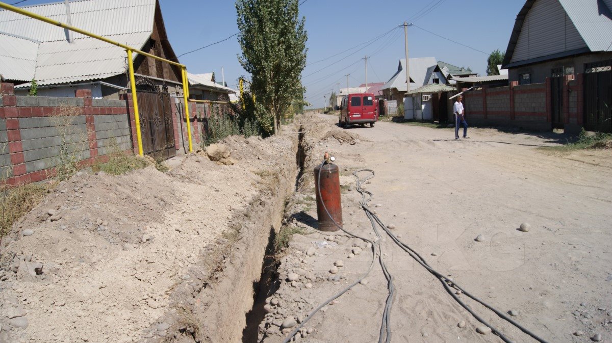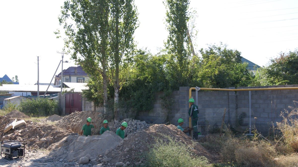 На южной окраине жилого массива «Кок-Жар», что в юго-восточной части Бишкека, рабочие вырыли длинные и глубокие траншеи и уложили в них трубы. Кто-то измеряет длину металлической артерии, без конца гудит электросварка, при соединении труб улицу то и дело озаряют ее всполохи. Коммуникации желтого цвета, словно змеи, пролегли по пыльным улицам новостройки…