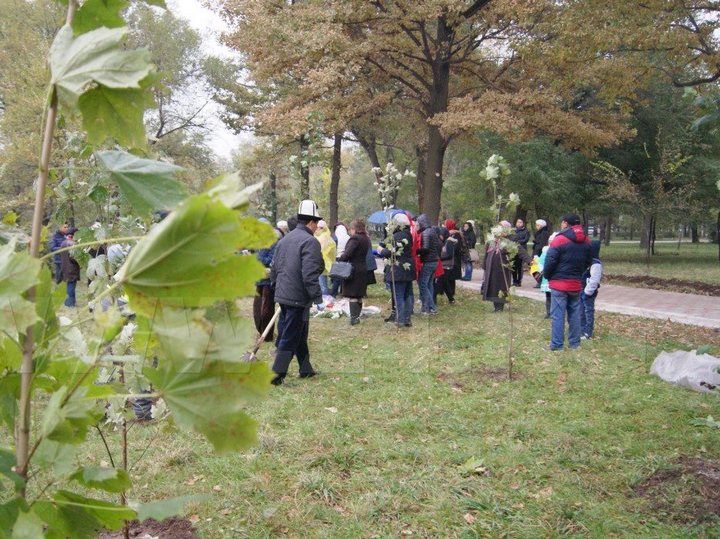 В Бишкеке сегодня появилась кленовая аллея в память о погибших в Москве при пожаре кыргызстанках.