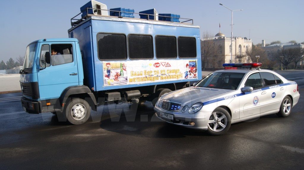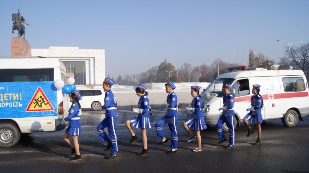 Увы, маршрут автопробега, посвященного столь важному вопросу, как безопасность детей, был довольно короток. От здания ГорГАИ на улице Горького до площади Ала-Тоо и обратно. Наверное, лучше, если бы руководство Патрульной милиции охватило как можно больше улиц города, чтобы большему числу водителей напомнить: будьте внимательны, на дорогах дети!