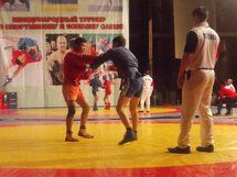 Баталии развернулись на двух коврах одновременно. На первом борются представители спортивного самбо, на втором – боевого. Схватки динамичные. Особый восторг вызывают эффектные броски спортсменов. Боевое самбо зрелищнее. Здесь в отличие от спортивного разрешены удары руками и ногами.