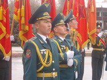 Вначале участники официальной делегации возложили цветы к Вечному огню. Среди них депутаты парламентов стран СНГ, Жогорку Кенеша, представители дипкорпусов, мэр Бишкека, ветераны Вооруженных сил КР и другие.