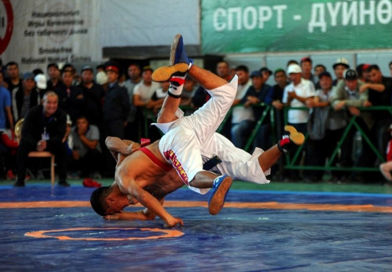 В Таласе на Национальных играх кочевников 20 сентября прошел турнир по кыргыз курошу. Об этом сообщило Госагентство по делам молодежи, физической культуры и спорта КР.