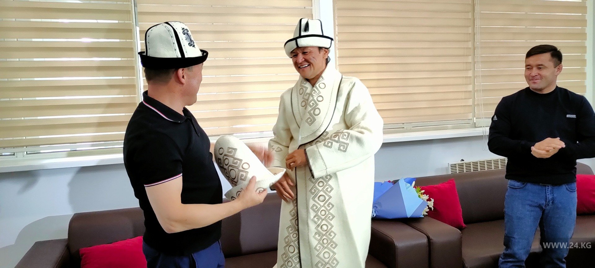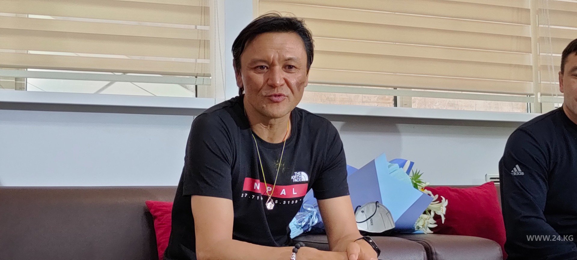 Эдуард Кубатов, покоривший Эверест, вернулся в Кыргызстан. В аэропорту «Манас» его встретили родные, представители Госагентства спорта и журналисты.