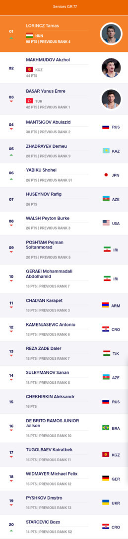 Кыргызстанский борец греко-римского стиля серебряный призер Олимпиады-2020 в Токио Акжол Махмудов поднялся на второе место в мировом рейтинге по греко-римской борьбе. Об этом сообщается на сайте United World Wrestling.