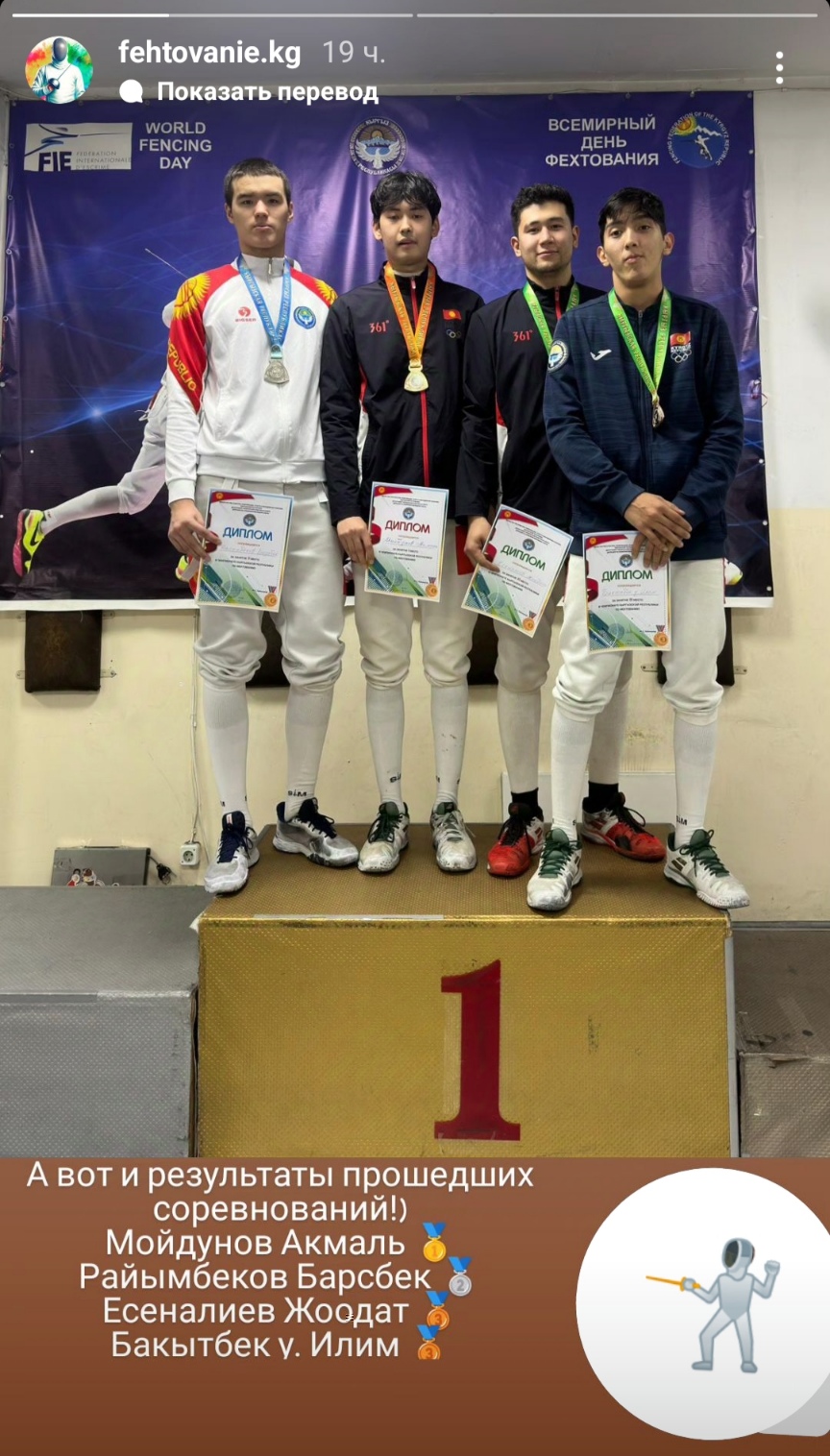 В Бишкеке прошел чемпионат Кыргызстана по фехтованию. Об этом сообщила федерация данного вида спорта в Instagram.