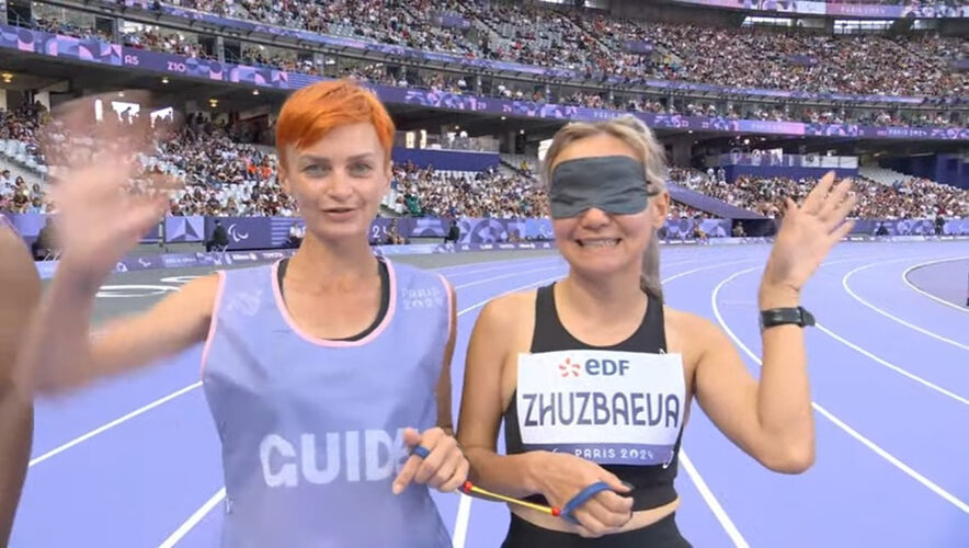 Незрячая бегунья Гулназ Жузбаева, выступая с гайдом Юлией Фернас, квалифицировалась на Паралимпийские игры на дистанции 1 тысяча 500 метров, преодолев ее за 6 минут 18 секунд.