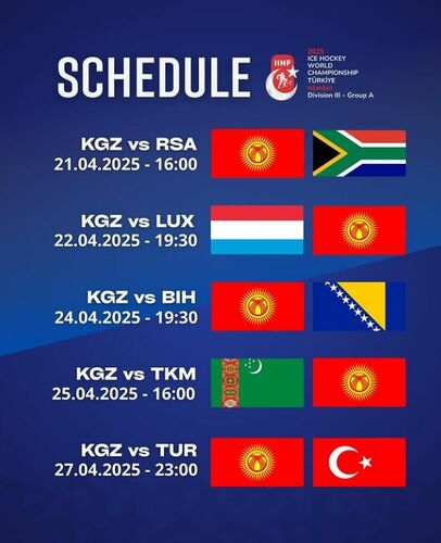 Сборная Кыргызстана выступит на чемпионате мира по хоккею в третьем по силе дивизионе в группе А. Об этом сообщила федерация данного вида спорта в соцсетях.
