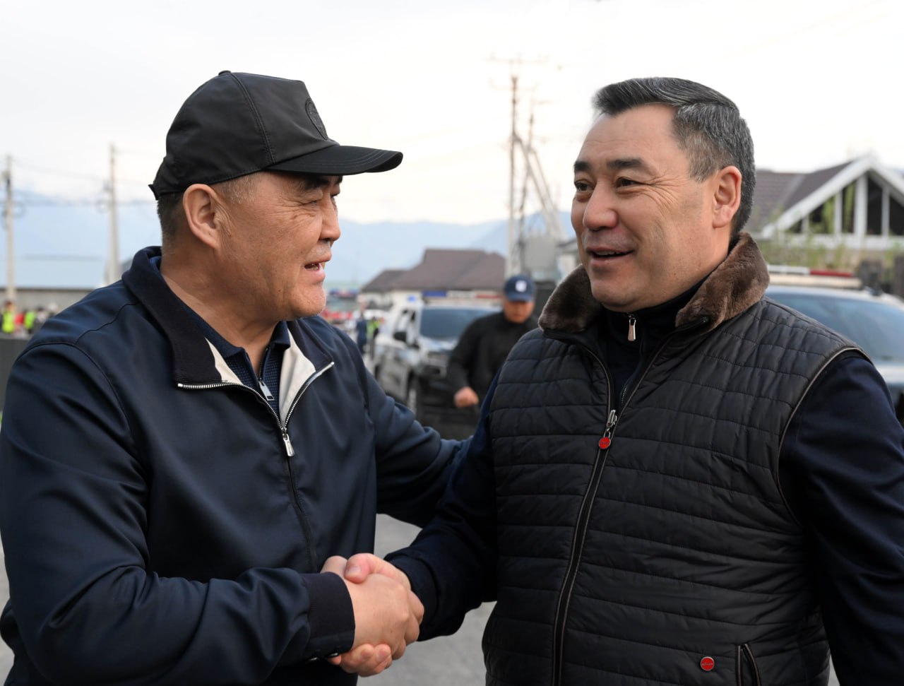 На церемонии открытия комплекса и во время матча главу государства сопровождали председатель ГКНБ Камчыбек Ташиев и экс-премьер-министр Феликс Кулов.
