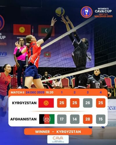Кубок CAVA (Центральноазиатской волейбольной ассоциации) проходит в Мале 19-25 декабря при участии сборных Афганистана, Бангладеш, Кыргызстана и Мальдивских островов.
