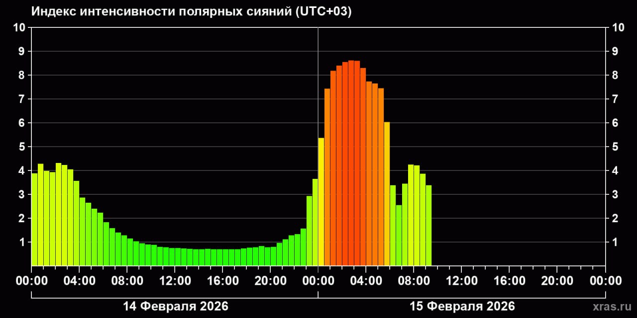 Общая продолжительность начавшегося ночью периода возмущений может составить до двух суток, но с сильно неравномерным воздействием: отдельные всплески и короткие бури в этот период могут перемежаться с довольно продолжительными «зелеными» участками. Выход бури на уровень выше G2 (средняя) в этот период считается маловероятным», — говорится в сообщении.