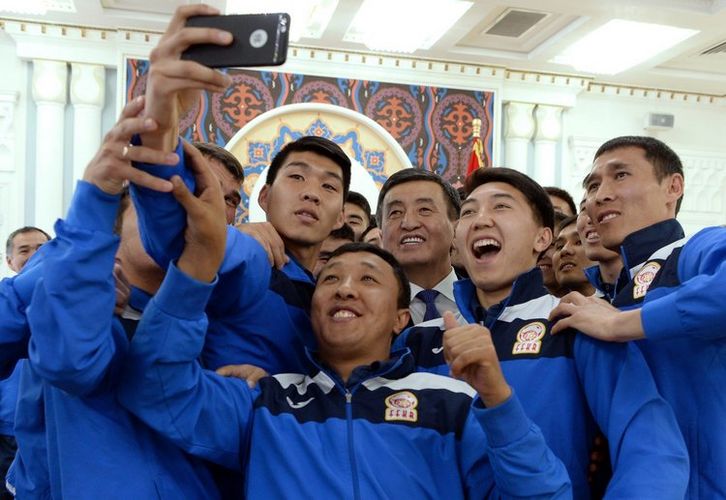 Алмазбек Атамбаев не отказывался делать селфи и во время президентства. Вот он на тренировке сборной Кыргызстана по футболу.