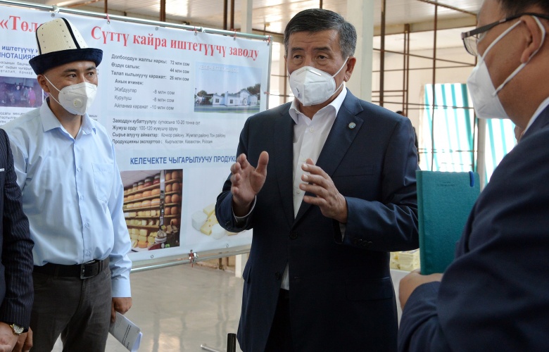 Президент побывал и на предприятии по переработке молока. Руководитель завода Болот Толонов сообщил, что в настоящее время в рамках проекта строится новый молокоперерабатывающий завод общей сметной стоимостью в 72 миллиона сомов.