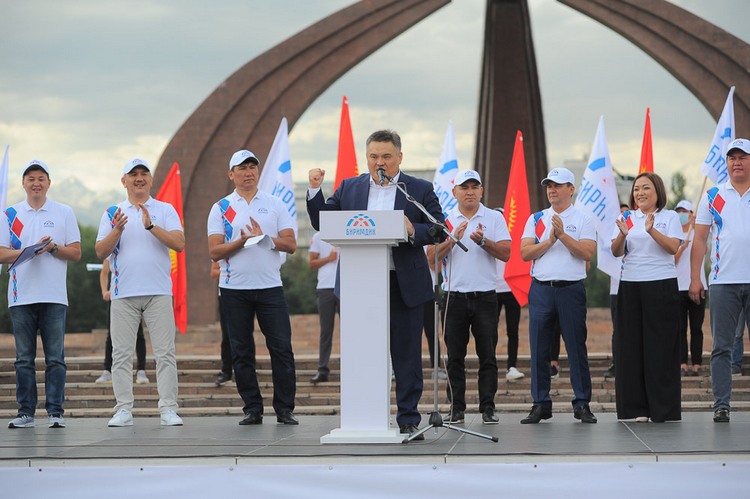 Сегодня, 4 сентября, на площади Победы Бишкека партия демократического социализма — евразийский выбор «Биримдик» дала официальный старт своей агитационной кампании. В мероприятии приняли участие лидеры партии, ее сторонники, партийцы из разных регионов страны и представители молодежного крыла политобъединения.