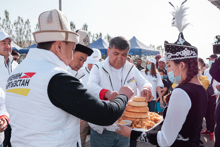 Жители Чуйской области встречают кандидатов от партии «Мекеним Кыргызстан». Агиткараван политического объединения до этого побывал в Нарынской и Иссык-Кульской областях. Традиционно звучат теплые слова поддержки в адрес партийцев.
