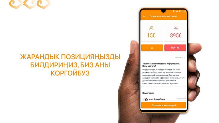Пользователь может не только проголосовать, но и оставить комментарий, выразив свою личную позицию относительно проблемы, отраженной в опросе: если не согласен с тем или иным законопроектом, который обсуждается в Жогорку Кенеше. Здесь можно создавать петиции, выражая таким образом мнение гражданского сообщества.