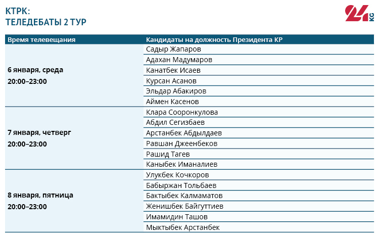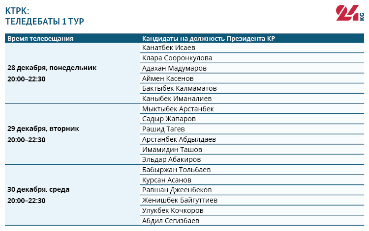Теледебаты на ОТРК пройдут в два тура: первый состоится 28-30 декабря, второй — 6-8 января 2021 года.