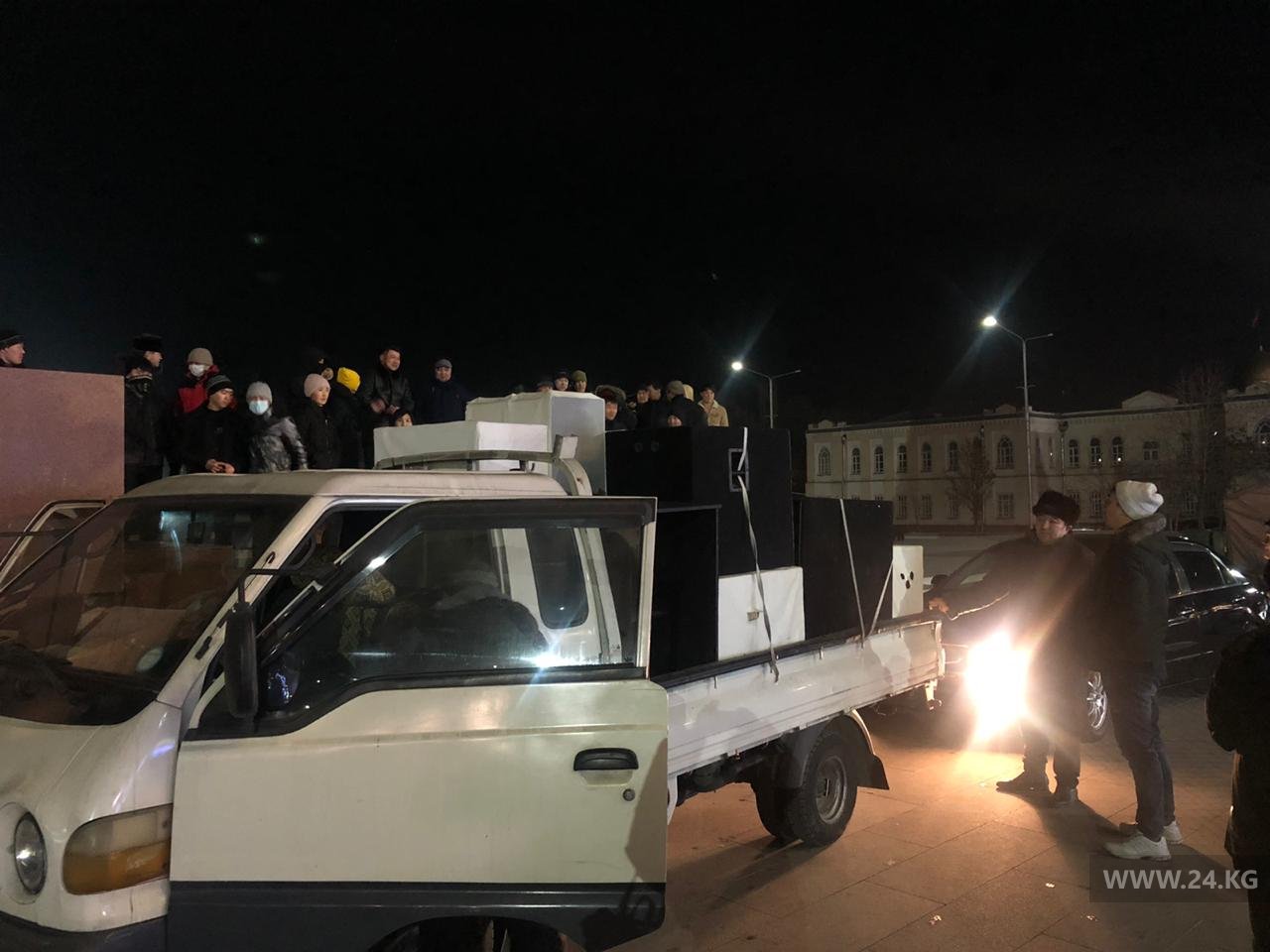 Владельцы аппаратуры сказали, что вернутся на площадь Ала-Тоо завтра в 11.00.