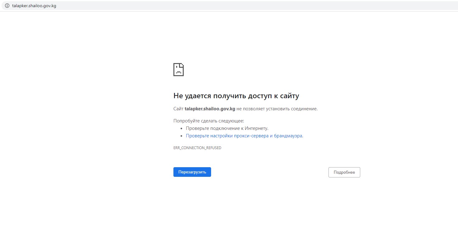 В Кыргызстане стартовала предвыборная агитация на выборах в местные кенеши. Информацию о кандидатах и программах партии ЦИК должна разместить на сайте: http://talapker.shailoo.gov.kg/. Однако избиратели сообщают 24-kg.com, что он не работает.