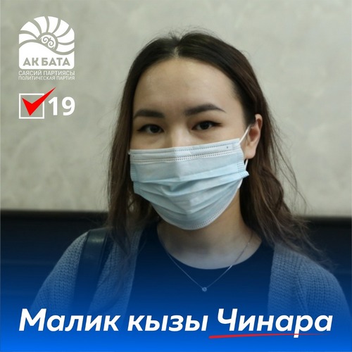 Малик кызы Чинара: «Я учусь на врача. Но, к сожалению, профессия медика не является престижной, труд врачей недооценен. В программе партии «Ак Бата» есть пункт поддержки учителей, врачей и работников культуры. Это не только ежегодные индексации муниципальных надбавок, но и выделение жилья. А это очень важно, ведь из-за невозможности приобрести собственное жилье бюджетники вынуждены скитаться по съемным квартирам. Уверена, если мэром Бишкека станет Нариман Тюлеев, то у врачей и педагогов появится возможность решить этот наболевший момент».