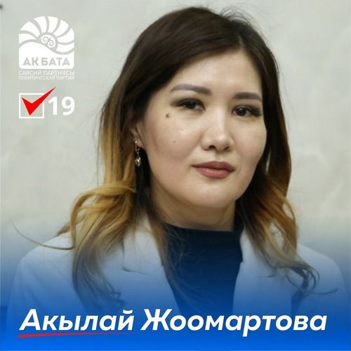 Акылай Жоомартова: «Я и вся моя семья поддерживаем партию «Ак Бата» и Наримана Тюлеева. Он человек слова, это доказывают его дела и результаты его работы. Мне очень понравилась его инициатива о строительстве пешеходных зон и преображении Ботанического сада в современный парк. Нам, горожанам, очень не хватает таких мест. А еще мне очень понравилось высказывание Наримана Тюлеева о том, что наша столица должна стать городом для женщин. Очень люблю каблуки».