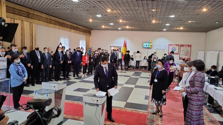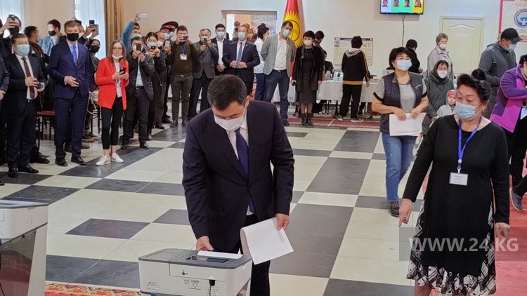 Президент Садыр Жапаров проголосовал на избирательном участке № 1053 в Ленинском районе Бишкека.