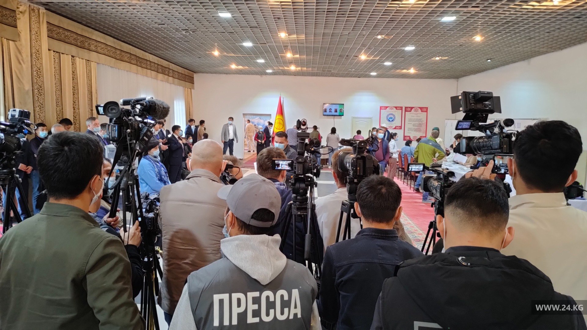 Президента Кыргызстана Садыра Жапарова больше часа ждут на избирательном участке № 1053 в селе Чон-Арык.