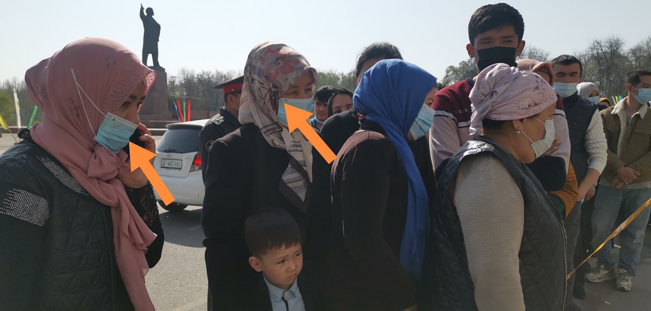 В Оше избирателям раздают медицинские маски с отверстиями. Об этом 24-kg.com сообщил Азамат Бакиров.