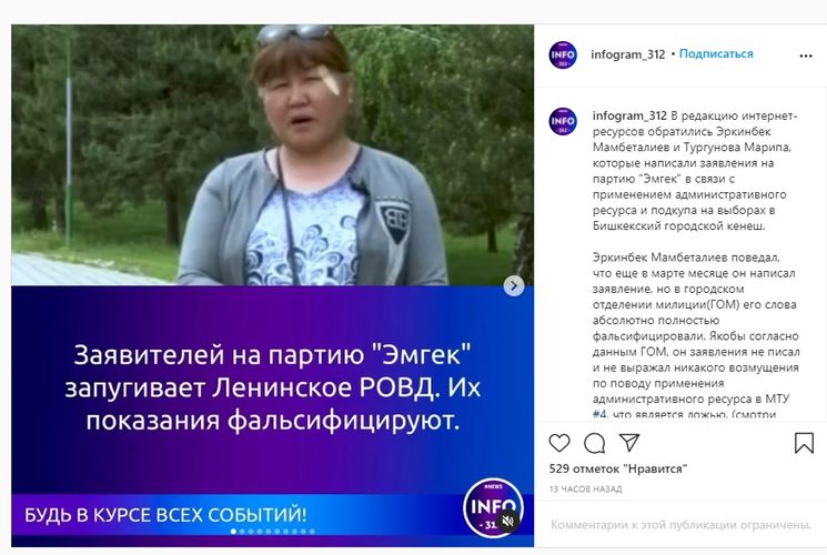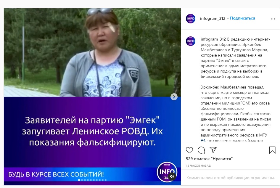 Угрозы со стороны силовых органов подтвердила квартальная МТУ № 4 Калыя Джапарова. В своей пояснительной записке она рассказала, как сотрудник штаба партии «Эмгек» по имени Омурбек угрожал, что обязательно разберется с ними после выборов.