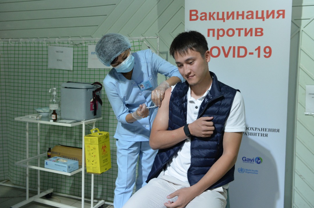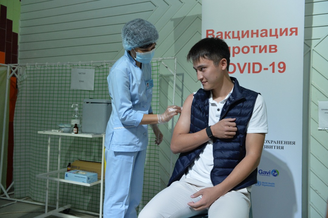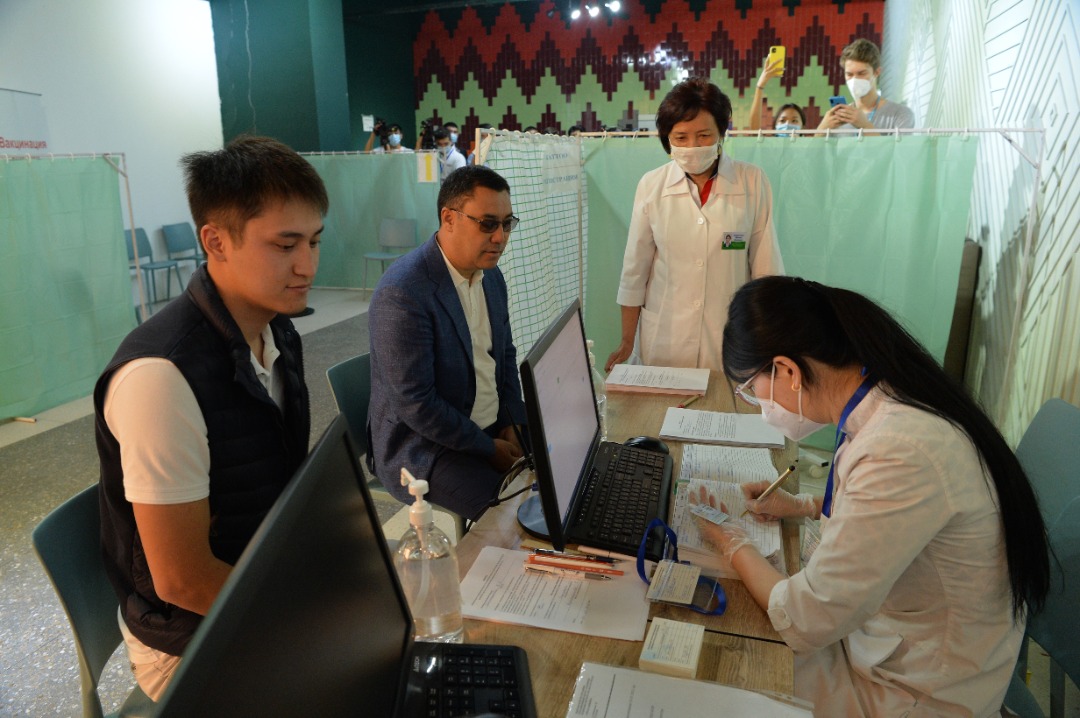 Вместе с отцом защититься от коронавируса решил и его сын Рустам. Он пришел в мобильный пункт вакцинации вместе с Садыром Жапаровым.