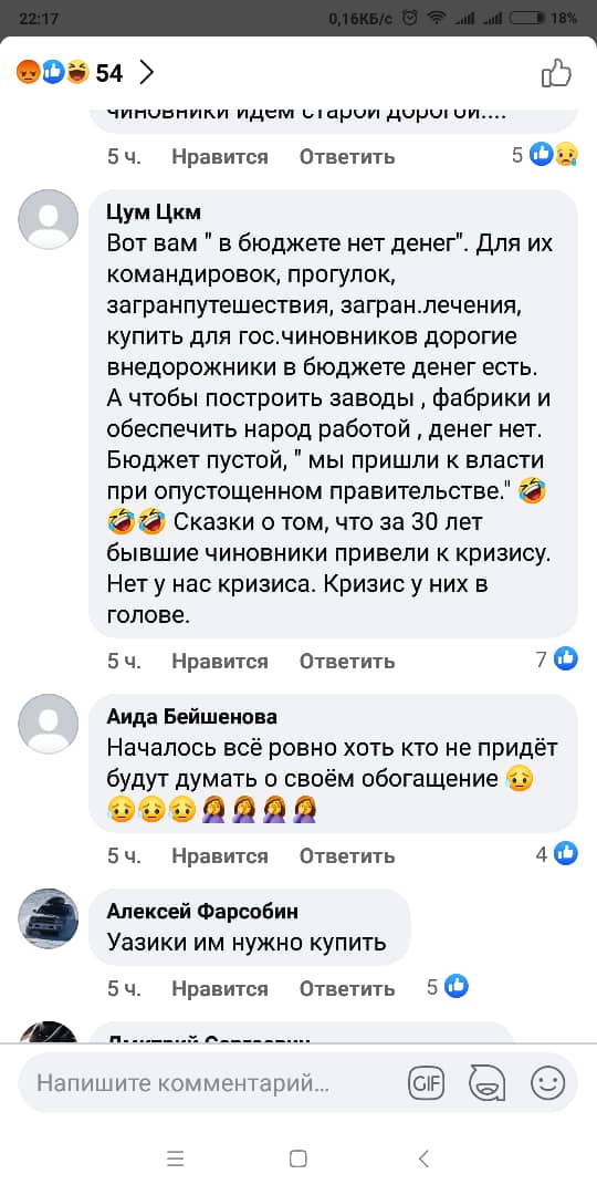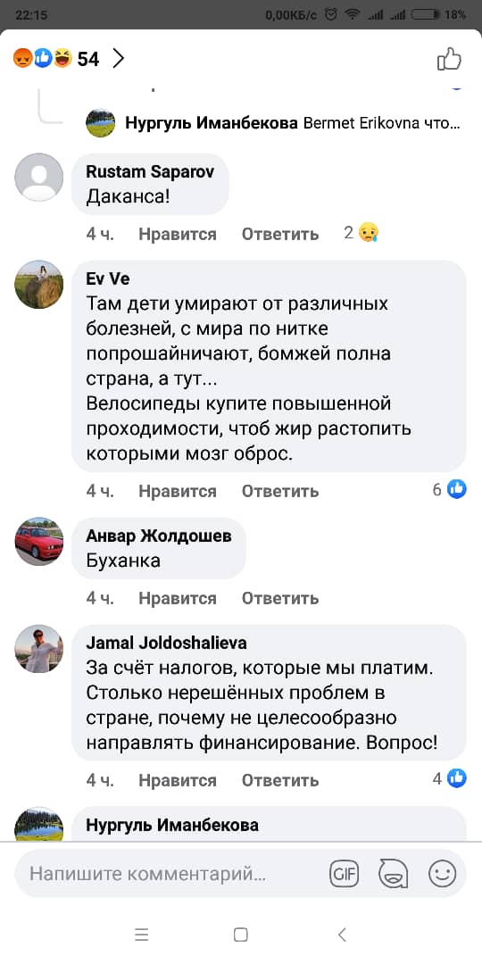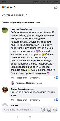 Часть пользователей напоминает, на чем приходится передвигаться кыргызстанцам («На троллейбусы нормальные денег нет, а на машины нашли») и что в режиме ЧС в экономике так и живут.