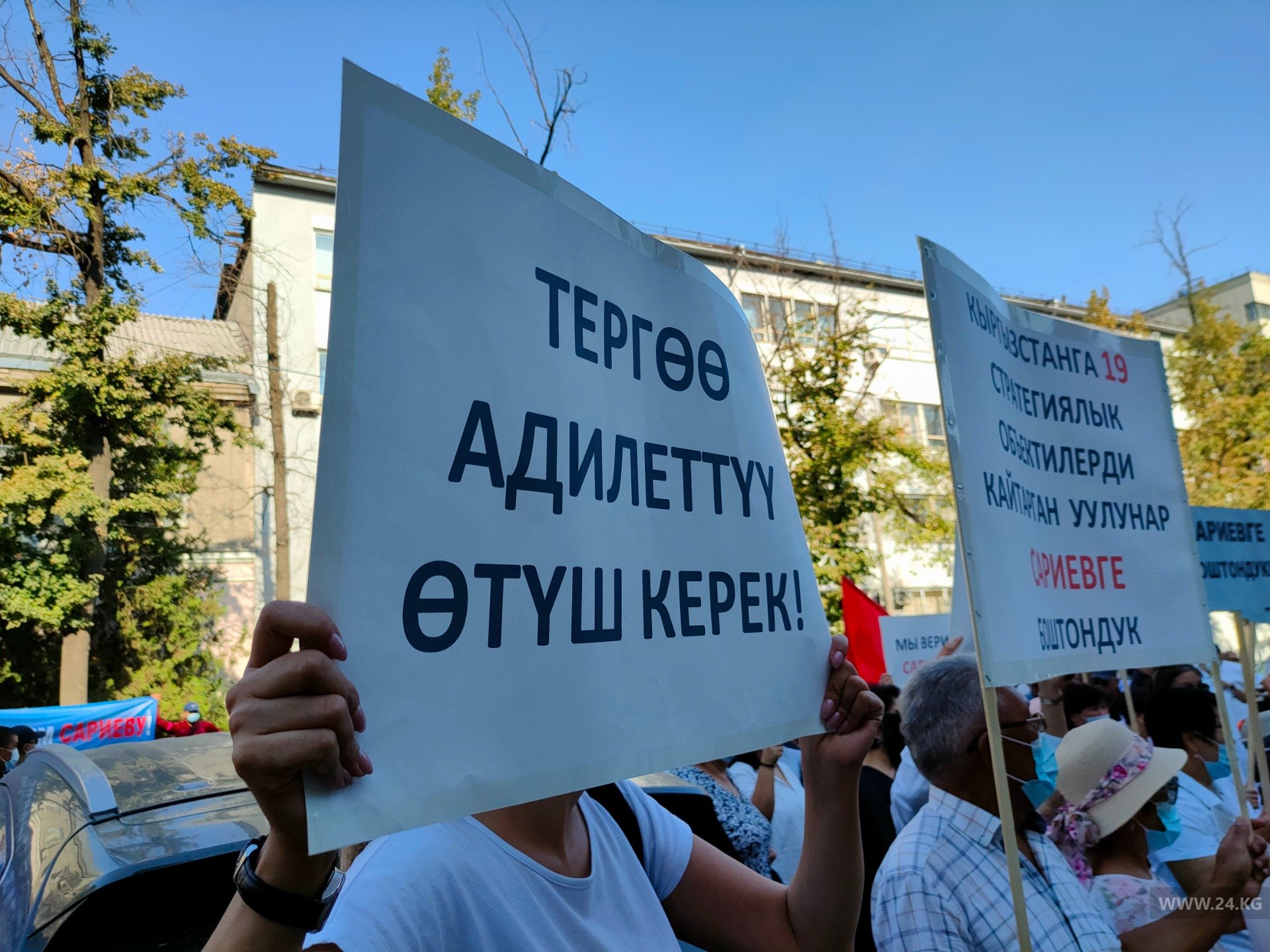 В Бишкеке возле здания горсуда сегодня вновь митингуют сторонники экс-премьер-министра Темира Сариева.
