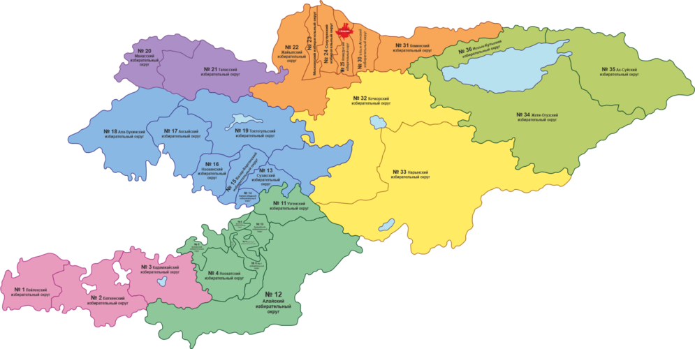 ЦИК, согласно Закону «О выборах президента и депутатов Жогорку Кенеша», предоставила официальную схему и границы избирательных округов для голосования по мажоритарной избирательной системе.