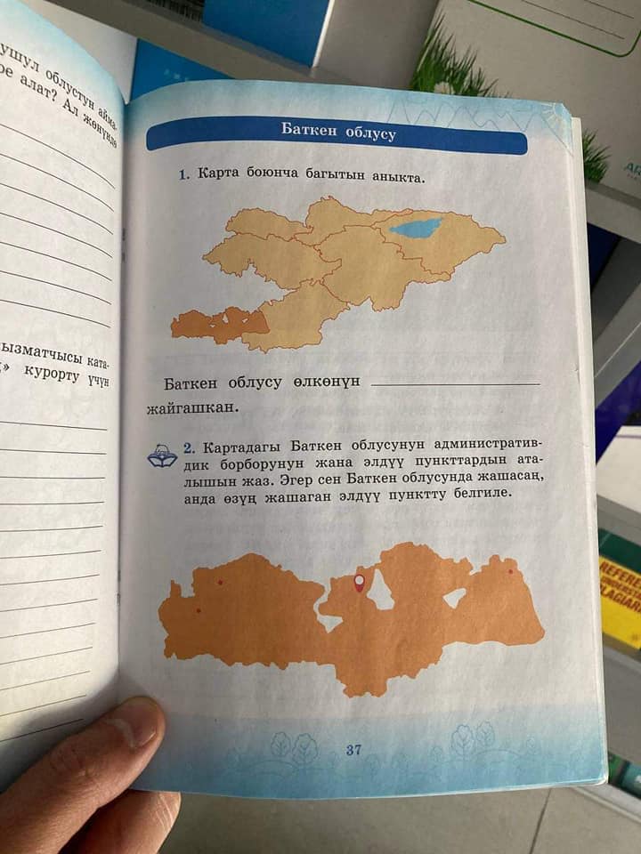 В Министерстве образования и науки знают об учебнике, где неправильно изображена карта страны. Об этом 24-kg.com сообщил сотрудник пресс-службы Самат Тоялиев.
