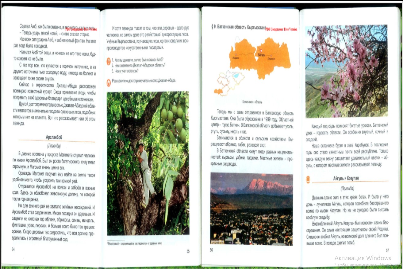 В соцсетях опубликовали фотографию учебника по родиноведению для третьего класса общеобразовательных школ с русским и кыргызским языками обучения. В книге несколько картинок с картой Кыргызстана, где анклав Ворух отделен от КР.