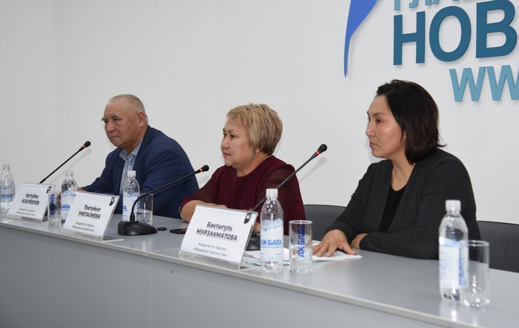 Программу партии Токтайым Уметалиева называет комплексом удачных идей. Если кандидаты от партии пройдут в Жогорку Кенеш, то обещают заняться пенсионной реформой и повысить пенсии до 20 тысяч сомов. Позаботиться о матерях-одиночках и поднять им пособия до 10 тысяч сомов тоже обещает партия.