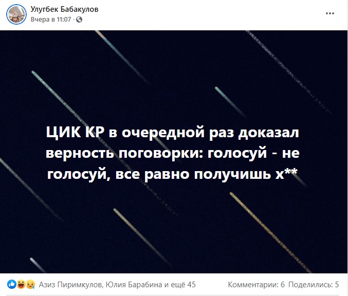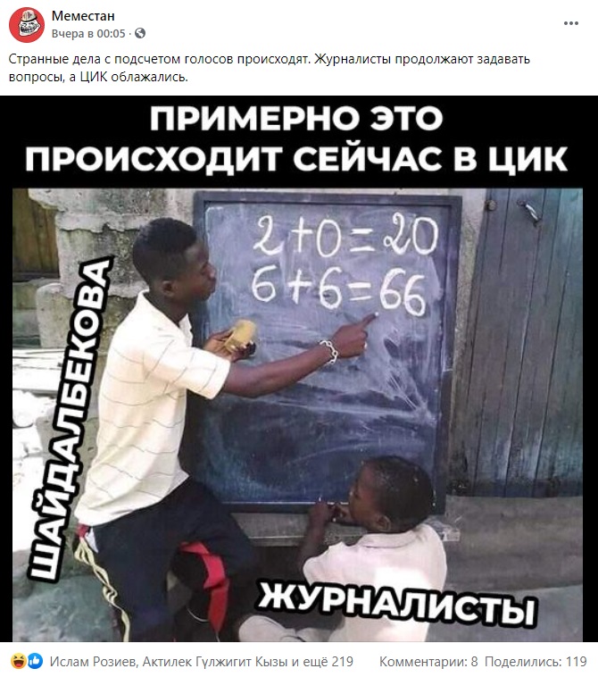 В первую очередь пользователи кырнета начали шутить над сбоем в системе ГАС «Шайлоо» и предложили свои версии случившегося.