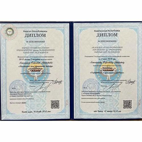 Что же касается фигурирующих в проверке ГКНБ депутатов, то Фарходбек Алимжанов написал в Facebook, что у него дипломы двух вузов — ОшГУ и Академии управления при президенте и что оба они подлинные. На своей странице он также выложил фотографии документов об окончании вузов.