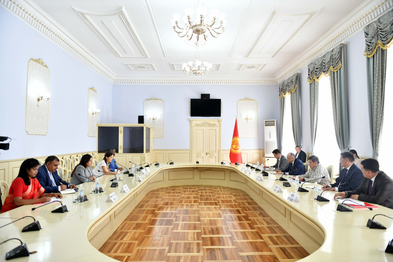 Председатель кабинета министров Кыргызстана Акылбек Жапаров встретился с государственным министром иностранных дел и культуры Индии Минакши Лекхи.