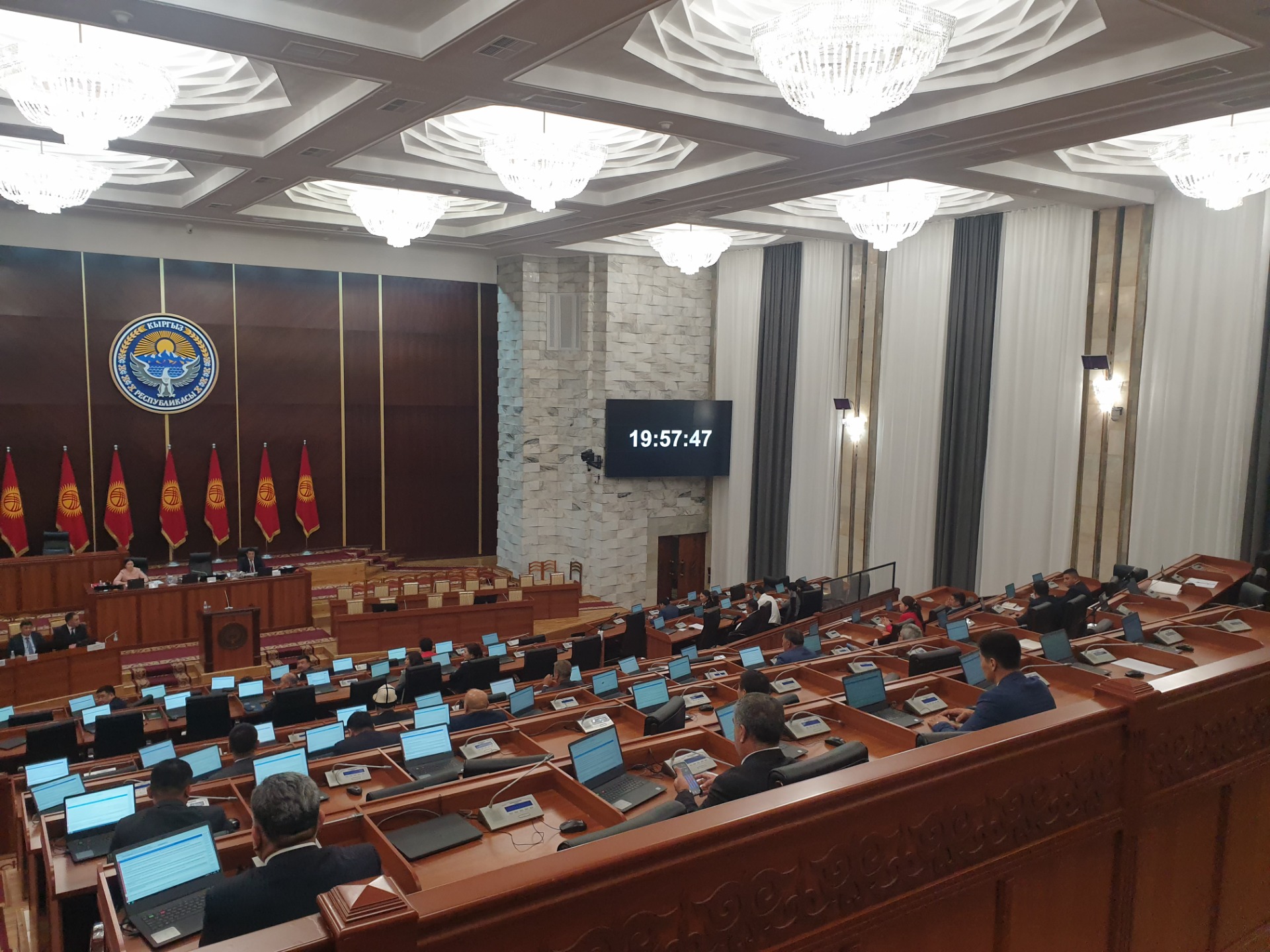 Сегодня в Жогорку Кенеше после 18.00 депутаты продлили время работы, несмотря на то, что нет кворума.