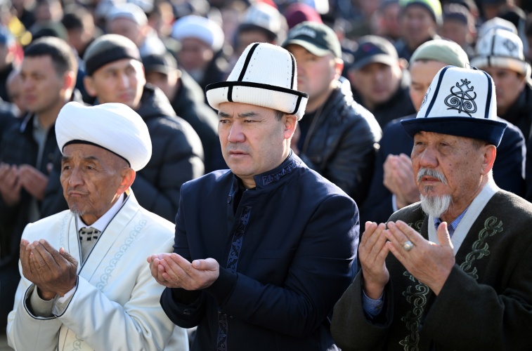Президент Кыргызской Республики сегодня принял участие в праздничном намазе по случаю завершения священного Рамазана и Орозо айта.