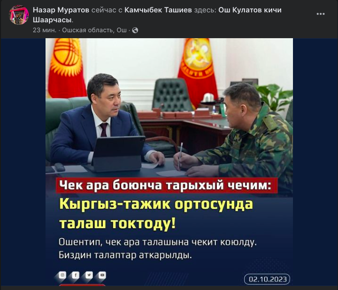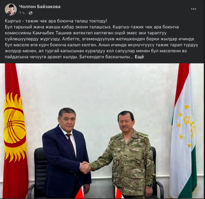 Провластные блогеры сообщают о некоем «историческом решении» по кыргызско-таджикской границе. Однако официальной информации ни от пресс-службы президента, ни от кабинета министров, ни от ГКНБ не поступало.