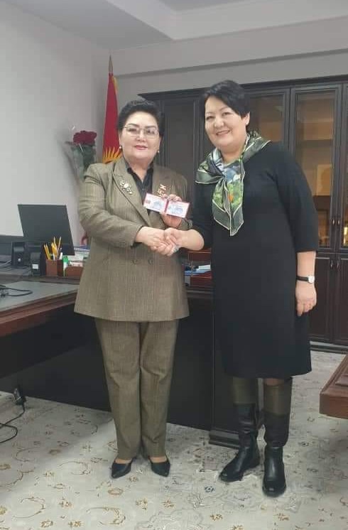 Награду вручила министр образования и науки Догдуркул Кендирбаева. В публикации отмечается, что нагрудной знак присужден Нарматовой за весомый вклад в развитие сферы образования.