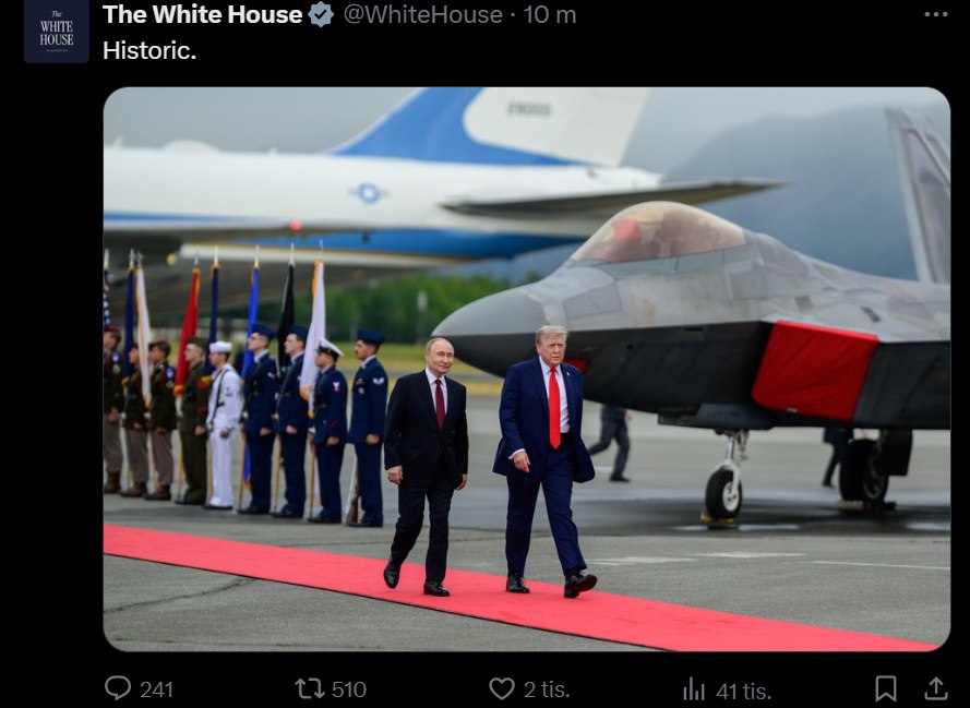 На Аляску первым прилетел борт главы Белого дома. В Анкоридже приготовили красную дорожку для встречи как Дональда Трампа, так и Владимира Путина. Президент США не выходил из самолета в ожидании лидера России.